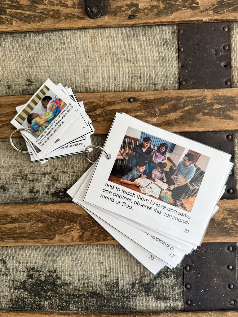 We wanted the same type of thing to help our family memorize The Family: A Proclamation to the World so I created these memorization cards back in 2012 and hope they are helpful for you too.